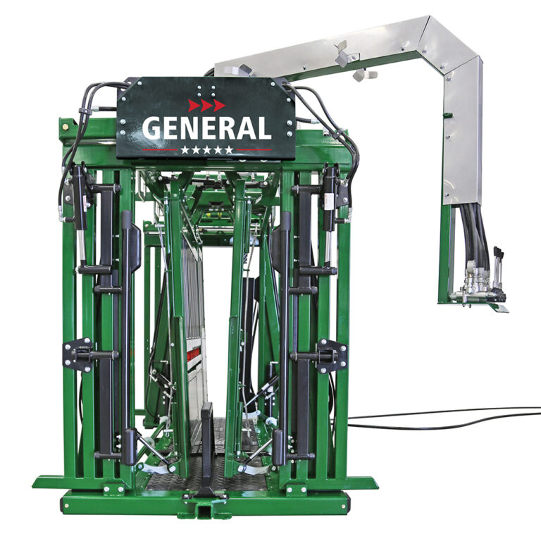For your largest livestock, The General opens to a full 31.5″ from top to bottom, and has a unique 3-way squeeze design that has never been seen before in the industry. The pivoting swing arm allows you to control the live floor and top-mounted squeeze to move between Parallel, V-Squeeze, or A-Squeeze as needed when processing your cattle from either side of the chute.